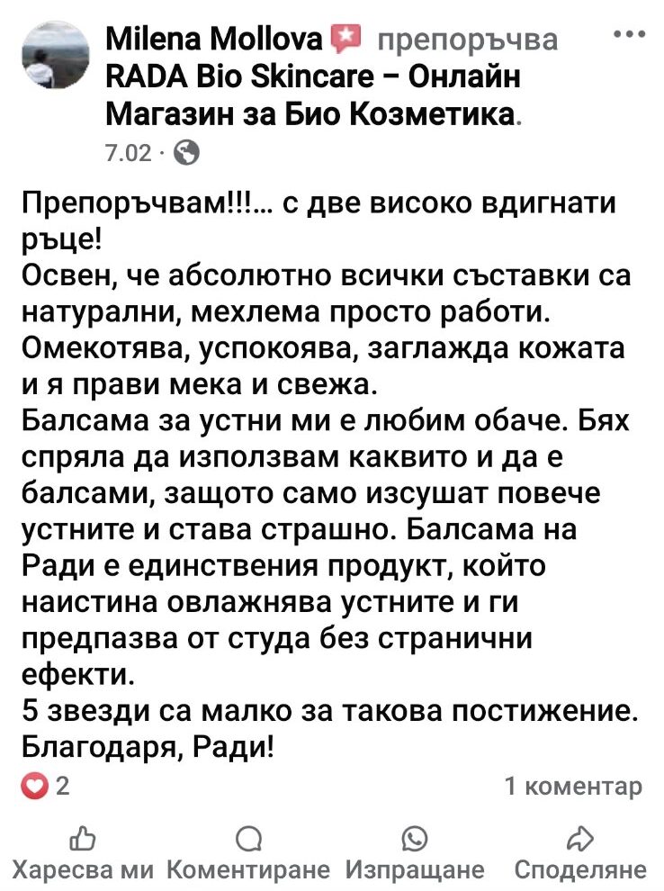 Сертифицираният крем Rada с натурални съставки подпомага кожата при екзема, напуквания, сухота и раздразнения, като облекчава сърбежа и възстановява кожната бариера. Подходящ за цялото семейство, той хидратира, подхранва и защитава кожата всеки ден.